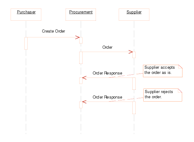 Although this scenario is not likely it is shown here because it is possible. However, the second order response that rejects the order will only be processed by Procurement if the order is not fully received by the buyer. If the receive status is Fully Received then Procurement will ignore the order response.
